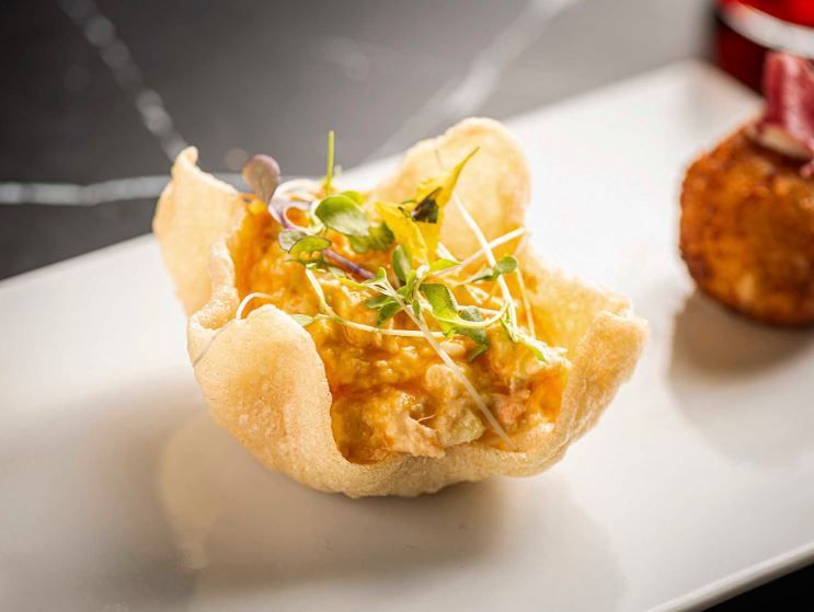Con cuchara se come también una de sus ensaladas, concretamente la Capresse, con cremoso de queso, tomates cherry asados, brotes, pesto y frutos secos; y rebañando pan, su Arroz de pato con magret y mahonesa de chipotle, uno de los platos estrella de la casa. Tampoco fallan los Tacos de bacalao a la romana con pesto y tomate frito, la Oreja cerdo, brava, lima y tajín o la crujiente Manita de cerdo semi deshuesada con salsa de callos y ensalada; y para tapear en su atractiva barra o en la ‘golosa’ terraza de verano con una caña o un vermut, chacinas, sus contundentes gildas caseras, Chicharrón de Cádiz con aceite de limón y cebollino, o una Degustación de quesos con guarnición seleccionada por la formadora gastronómica experta en quesos Ana Belén Goznález Pinos. Para acompañar, una buena selección de vinos —algunos de ellos por copas— generosos y dulces, espumosos; blancos nacionales e internacionales; y una especial presencia de tintos de muchas D.O. españolas y también argentinos, franceses o portugueses, con un rango muy amplio de precios, desde 22 € hasta más de 300 la botella.