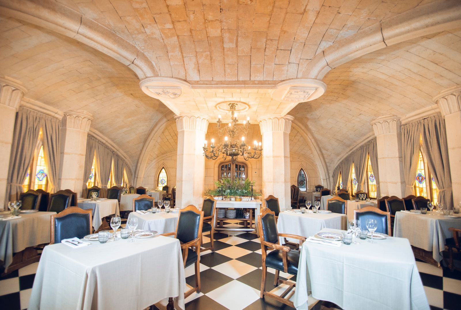 La identidad de La Tahona también se refleja en el espacio que ocupa desde 1985. Para su construcción se emplearon 45.000 kilos de piedra de Hontoria de la Cantera (Burgos) y vigas originales procedentes del Monasterio de Silos, adquiridas por Martiniano Palomero, fundador del Grupo Asador de Aranda, tras el incendio que afectó al edificio en 1970.