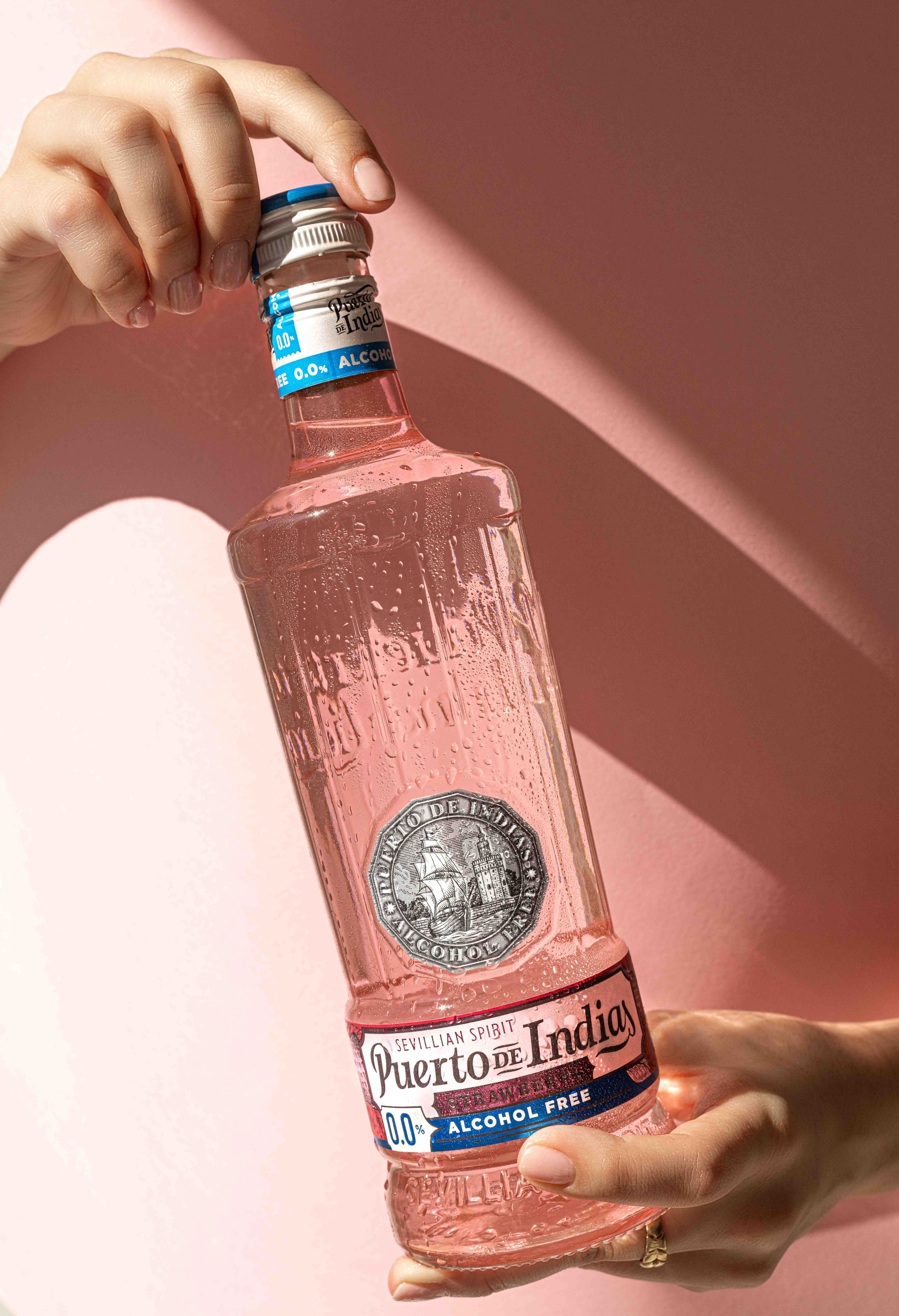 La marca sevillana, que revolucionó el mercado con la primera ginebra de fresas naturales del mundo, sorprende con la nueva versión de Puerto de Indias 0,0: Sin alcohol, pero con su inconfundible sabor.